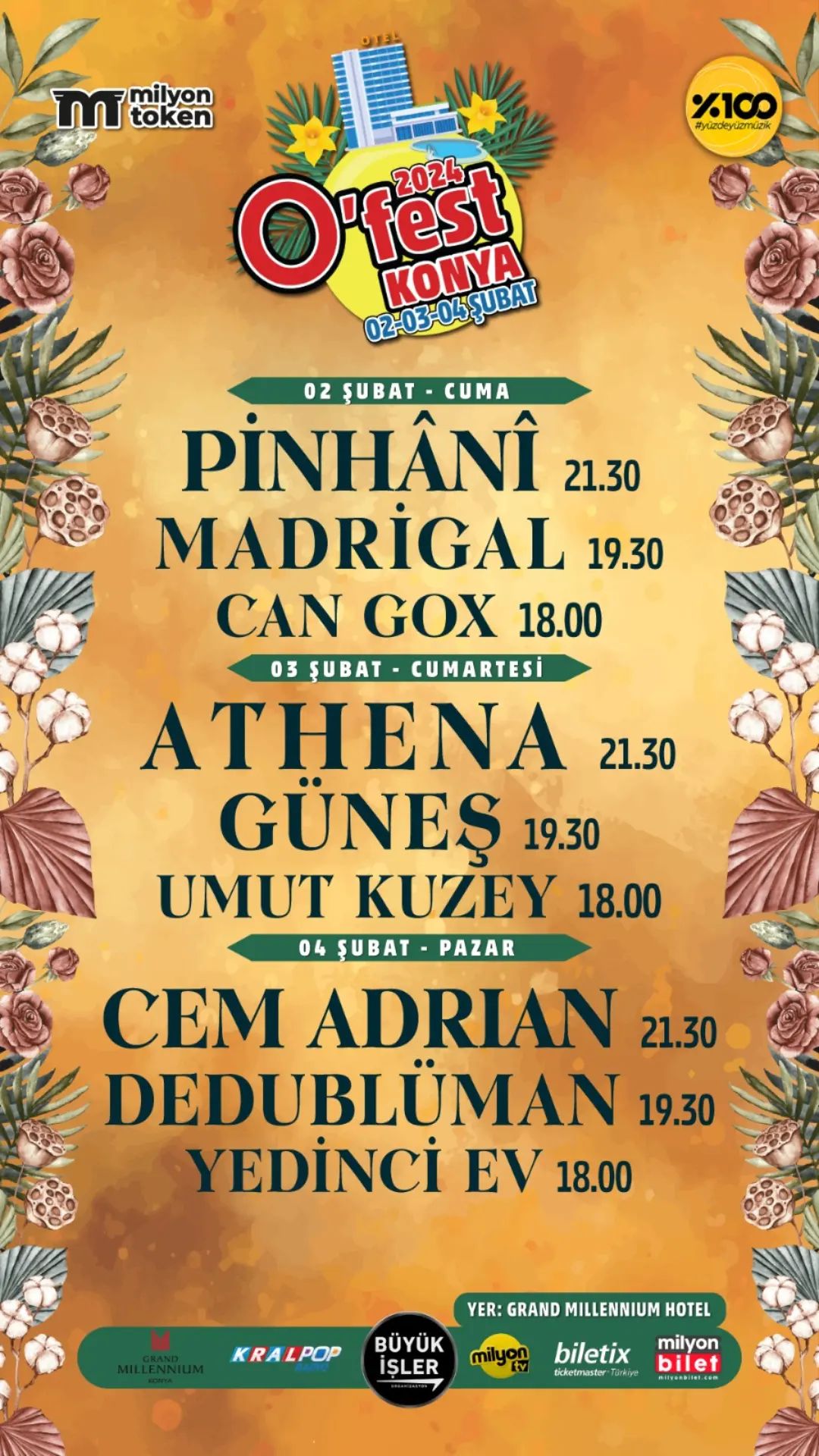 O'fest Konya 02 - 03 - 04 Şubat'ta Grand Millenium Hotel Konya 'da! Bu festivalin bir anını bile kaçırmak istemeyeceksiniz Biletler:@milyonbilet APP, milyonbilet.com ve Biletix'te!